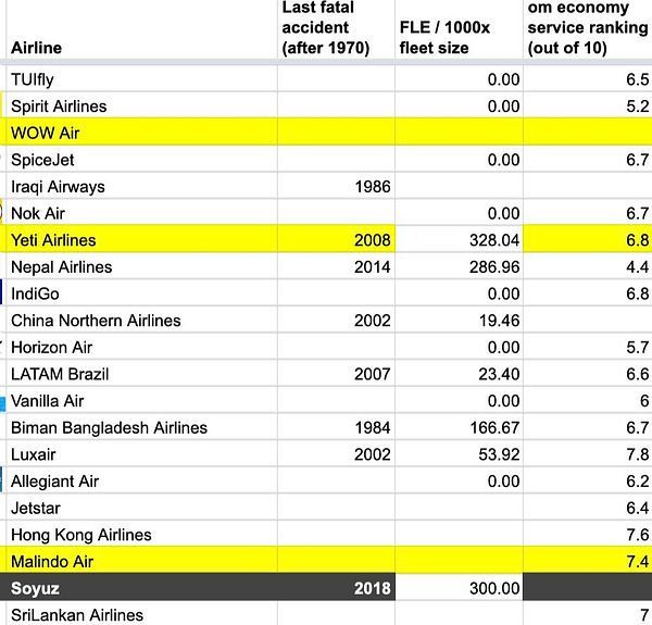 complete missing Service Ranking for some airlines #airlinelist