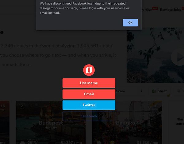 permanently shutdown Facebook login because fuck Facebook #nomads