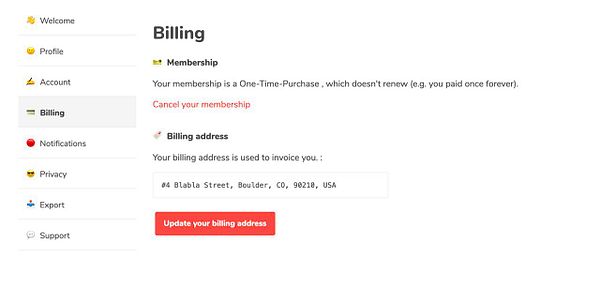 let users add their own billing address, which then gets put on invoice #nomads