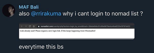 #nomads bug when user browser (like Station Browser) preloads login by email URL with cookie intact, add login_by_email_epoch time and don't delete login_by_email_hash after opening login link, only check if login is within 24 hours of requesting and let them in (reported by @marcantoinefon)