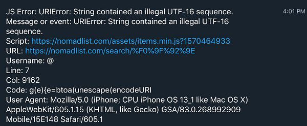 send part of JS code that errors to Telegram error bot #nomads