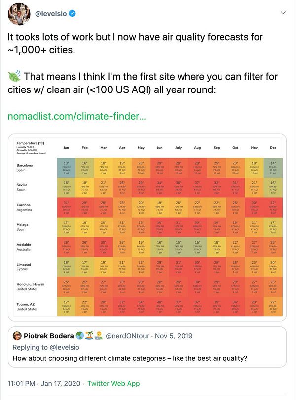 launch new air quality feature for climate finder nomadlist.com/climate-finder #nomads