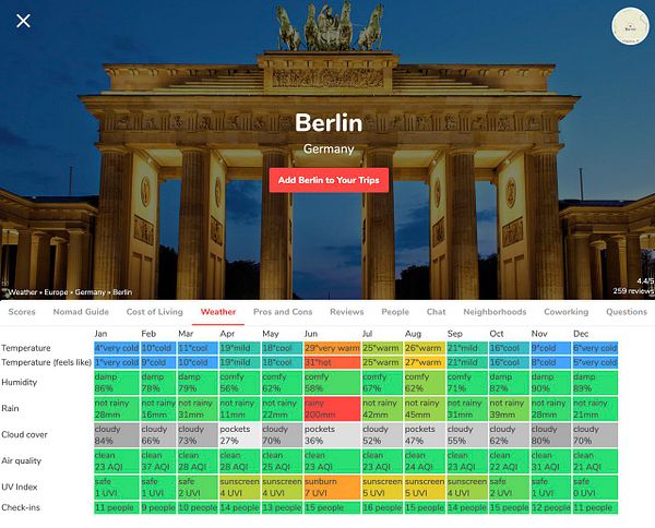 add /climate-finder type page for city as tab Weather and url for ex /amsterdam/weather #nomads nomadlist.com/weather/berlin