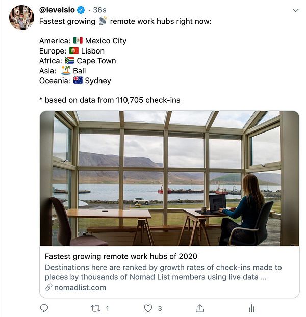 make analysis of fastest growing remote work hubs #nomads and post on Twitter twitter.com/levelsio/status/1…