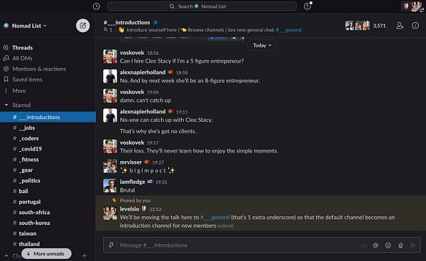 chat General -> ๐ Introductions, and make new General chat that isnโt the default invited new user channel, so that it gets less of a old bar with regulars vibe and become more welcoming to new members