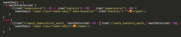 fix humidity 🥵 emoji shown if temperature >26 in filtered month regardles of humidity because used OR operator instead of AND operator in IF