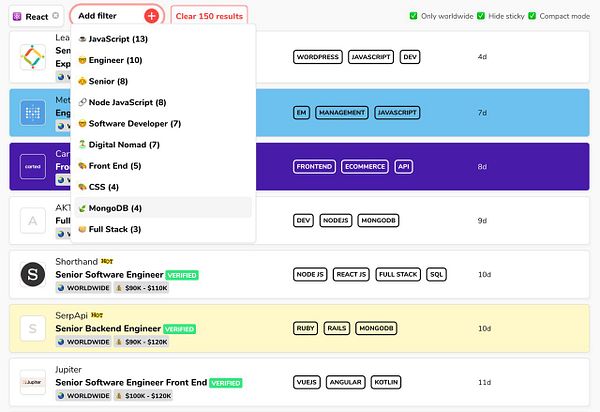add live count of jobs for search combination in autocomplete box as (count) #remoteok