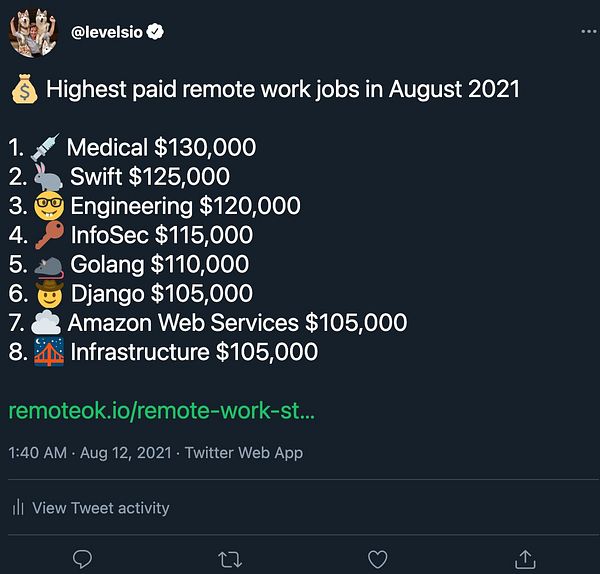 make new auto highest paid remote jobs tweet generator #remoteok