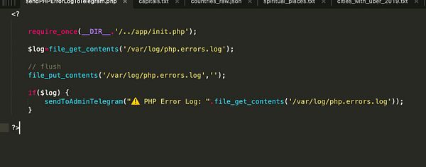 simplify Telegram PHP error log monitor to a few lines, just dump the PHP error log to Telegram and flush it #nomads #remoteok