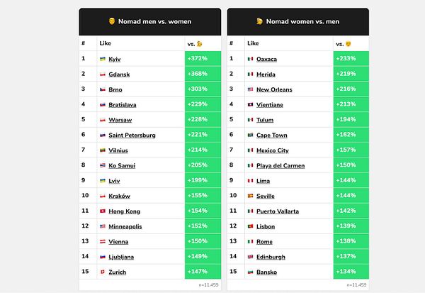 add where nomad men vs. women go more #nomads stats