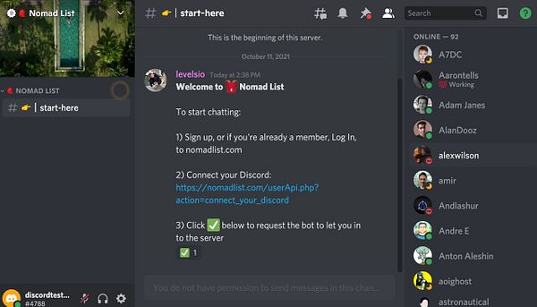 add start-here channel with message to click ✅ reaction to get in #nomads