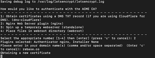 set up rebase.co letsencrypt ssl #rebase