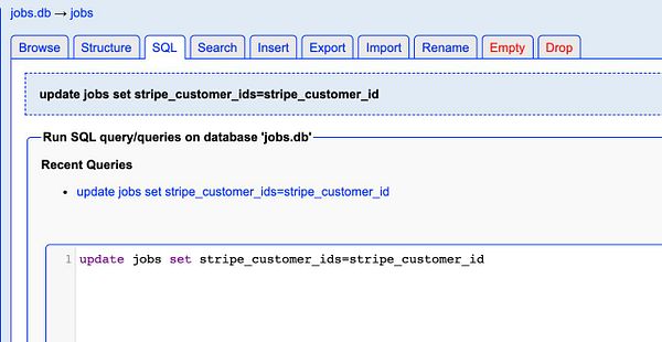 add “stripe_customer_ids” plural field so we can save multiple stripe_customer_ids when users bump a job but use different/new card in Stripe Checkout than card on file
