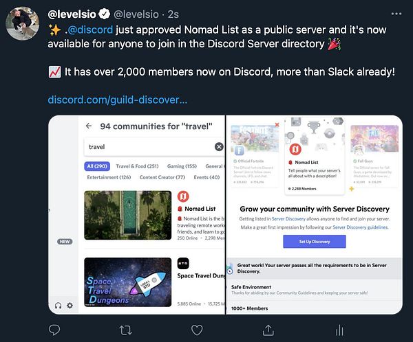 tell about the public Discord directory #nomads twitter.com/levelsio/status/1…