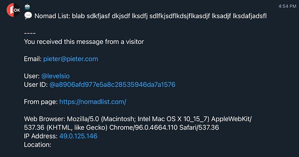 make feedback box go to Telegram instead of email #nomads