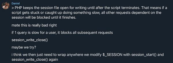 end user.php with session_write_close() to prematurely end session and unlock it so it doesn’t stall other PHP requests from same user in same session