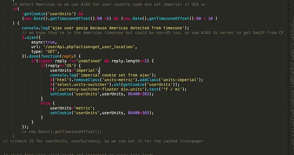 detect timezone in JS for Americas, then AJAX to server to check GeoIP to detect US and set Imperial system in JS and set cookie so we don’t have to check again on further page loads for static non member cache frontpage