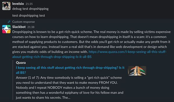 whitelist slackbot replies because Slack changed it so that subtype=bot_message for auto responses is now slackbot_response