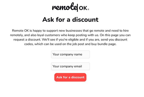 build “Ask for discount” page where companies who want a discount can ask for it and it gets automatically checked if they’re eligible (new customers, or loyal customers can get a discount, if they didn’t get a discount recently) and sends them instantly