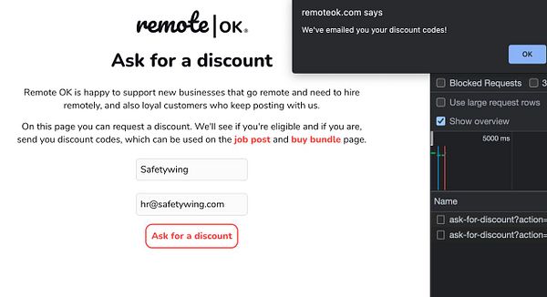 make more cases for asking for discount: 1) loyal company with company name in email domain = OK, 2) loyal company with previously used email = OK, 3) new company = OK, 4) company that already posted but isn’t loyal customer yet = NOT OK, 5) loyal company with unknown email and company name not in email domain = NOT OK