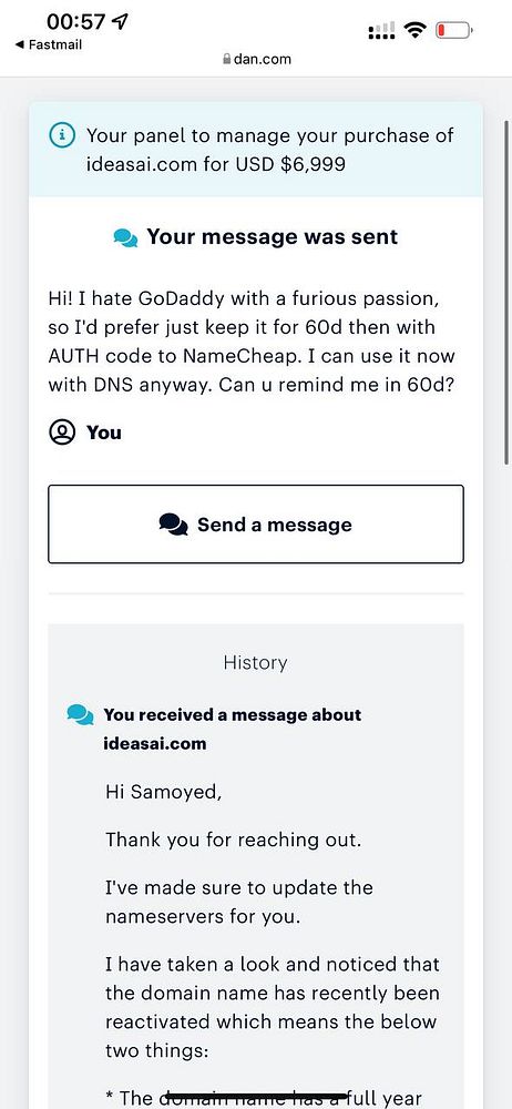 tell ideasAI.com domain broker to keep the domain for me for 60 days then AUTH it to me #ideasai