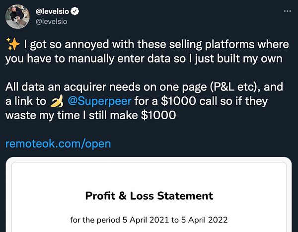 tweet P&L and buy link #remoteok #nomads