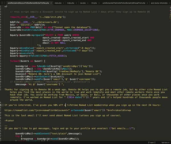 make auto email sender for new #remoteok users to get 50% discount on Nomad list