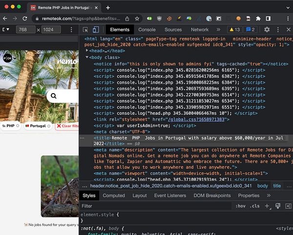 make <title> include all filters #remoteok
