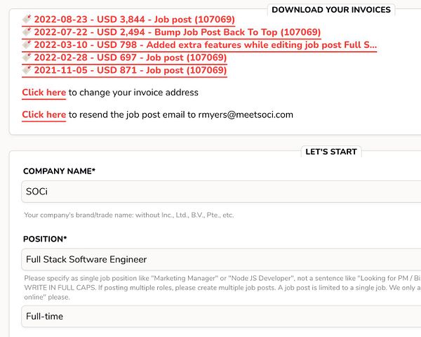 sort invoices by date on job post page #remoteok