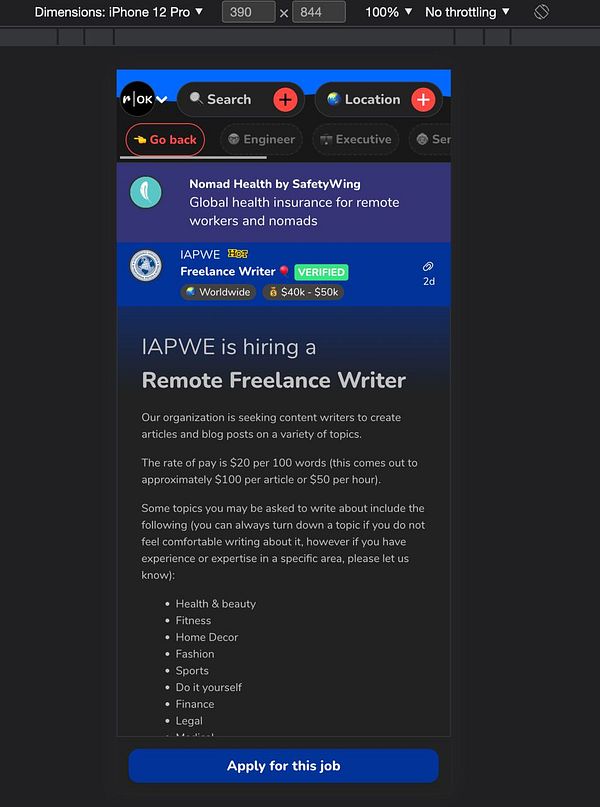 add [ πŸ‘ˆ Go back ] button to #remoteok single job post page which works on AJAX so no page reloads to go back to all jobs