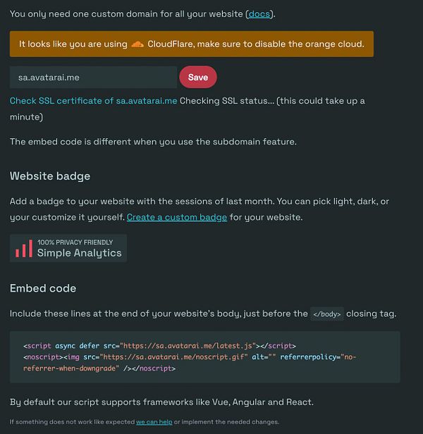 change #avatarai Simple Analytics to anti ad blocker CNAME sa.avatarai.me