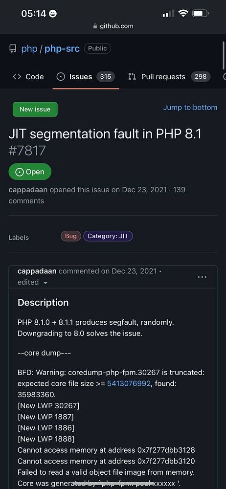 find out Stripe webhook bug is a bug in PHP 8.1 probably #interiorai github.com/php/php-src/issues…