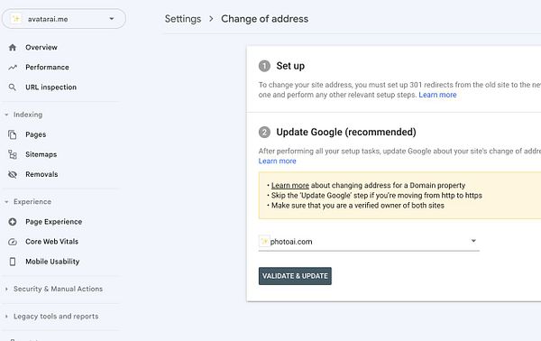 move Avatar AI to #photoai in Google webmaster console too