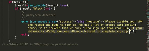 add “If your network is VPN'd, use your 4G as a hotspot to complete sign up” to sign up alert for @sathready