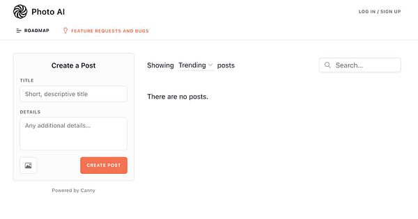 add [ πŸ’‘ Ideas + πŸͺ² Bugs ] to Canny board link #photoai