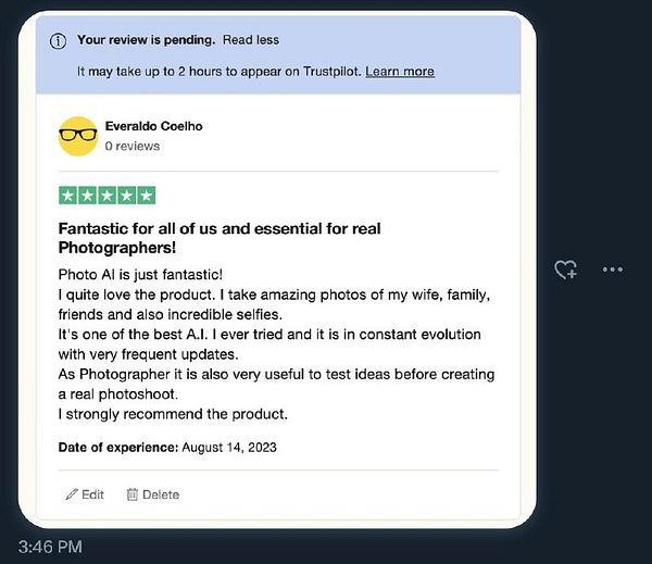 get first positive review on Trustpilot for #photoai