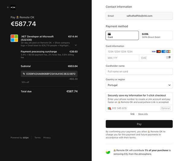 add payment processing surcharge because it’s strange we have to eat the Stripe fees #remoteok