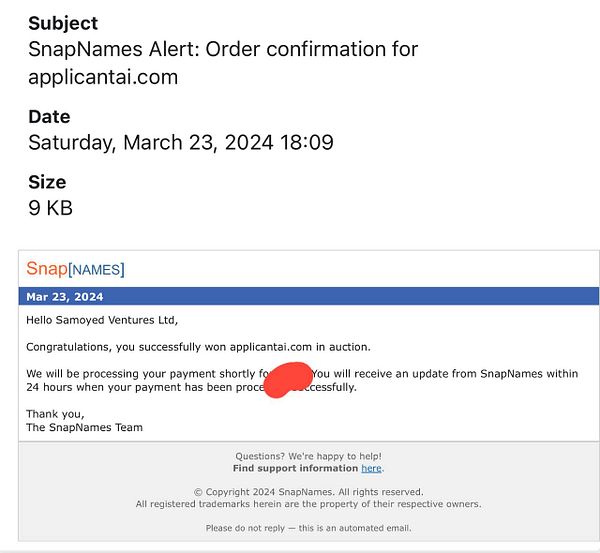 win domain auction for applicantai.com #applicantai w/ @AndreyAzimov