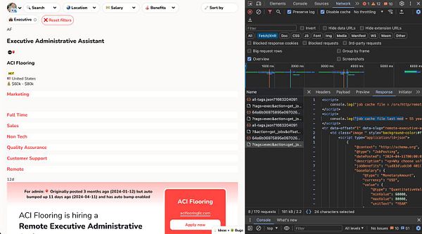 fix #remoteok bug with filtering because I had some JS logging and that broke the table layout