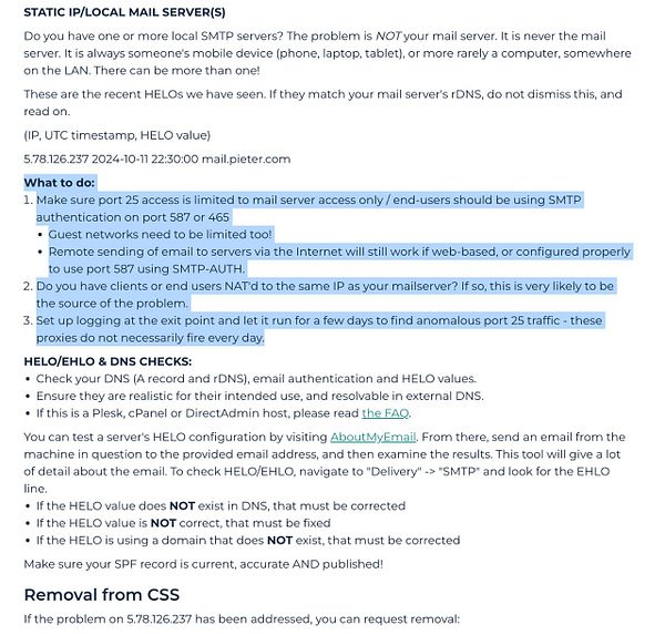 kill access to Port 25 for my mail server because it instantly puts you on a spam list because non-secured SMTP #pieter