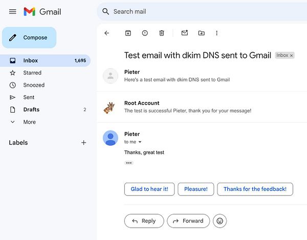 get email from my VPS into Gmail without spam #pieter