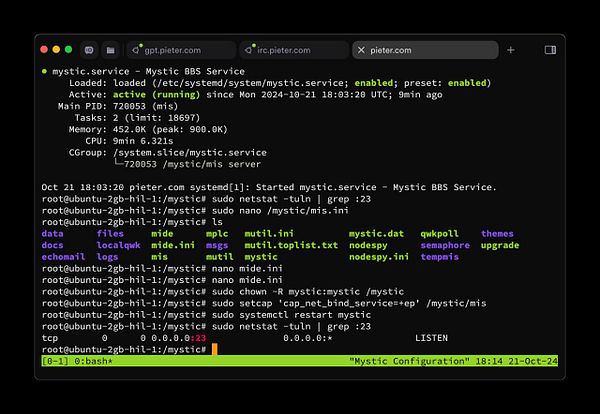 give mystic user the privilege to run on port 23 #pieter
