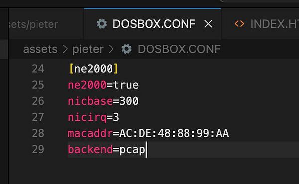 configure NE2000 network adaptor #pieter