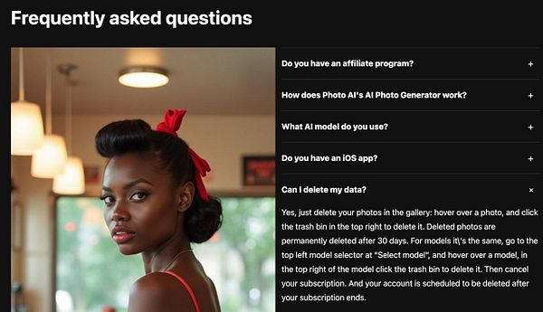 add self-service delete data in FAQ because customer asked #photoai