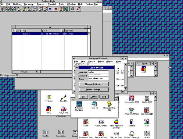 switch to my own dial-up ISP ppp.pieter.com #pieter