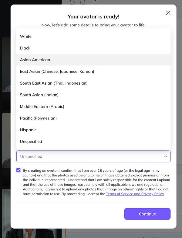 see HeyGen copy-paste Photo AI's ethnicity dropdown verbose #photoai