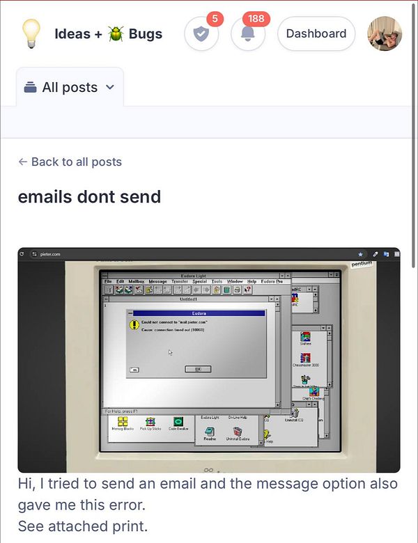 make email sending work on pieter.com in Eudora with my 25 to 587 iptables port forwarding #pieter