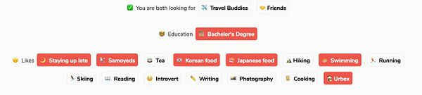 show matching user profile interests if matching #nomads