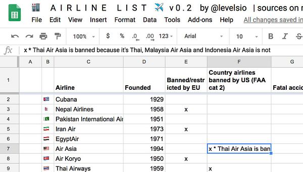 add EU and USA-FAA banned airlines list #airlinelist