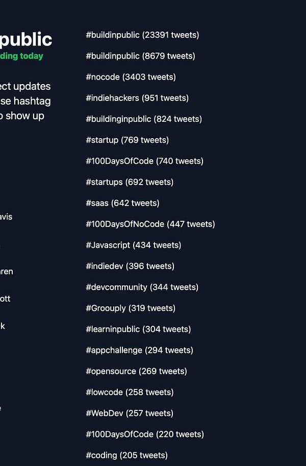 Extract hashtags and show on buildinpublic.com/hashtags #buildinpublic